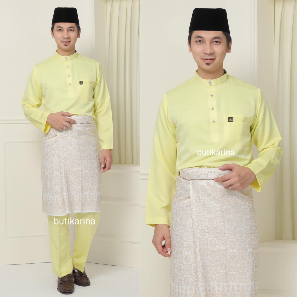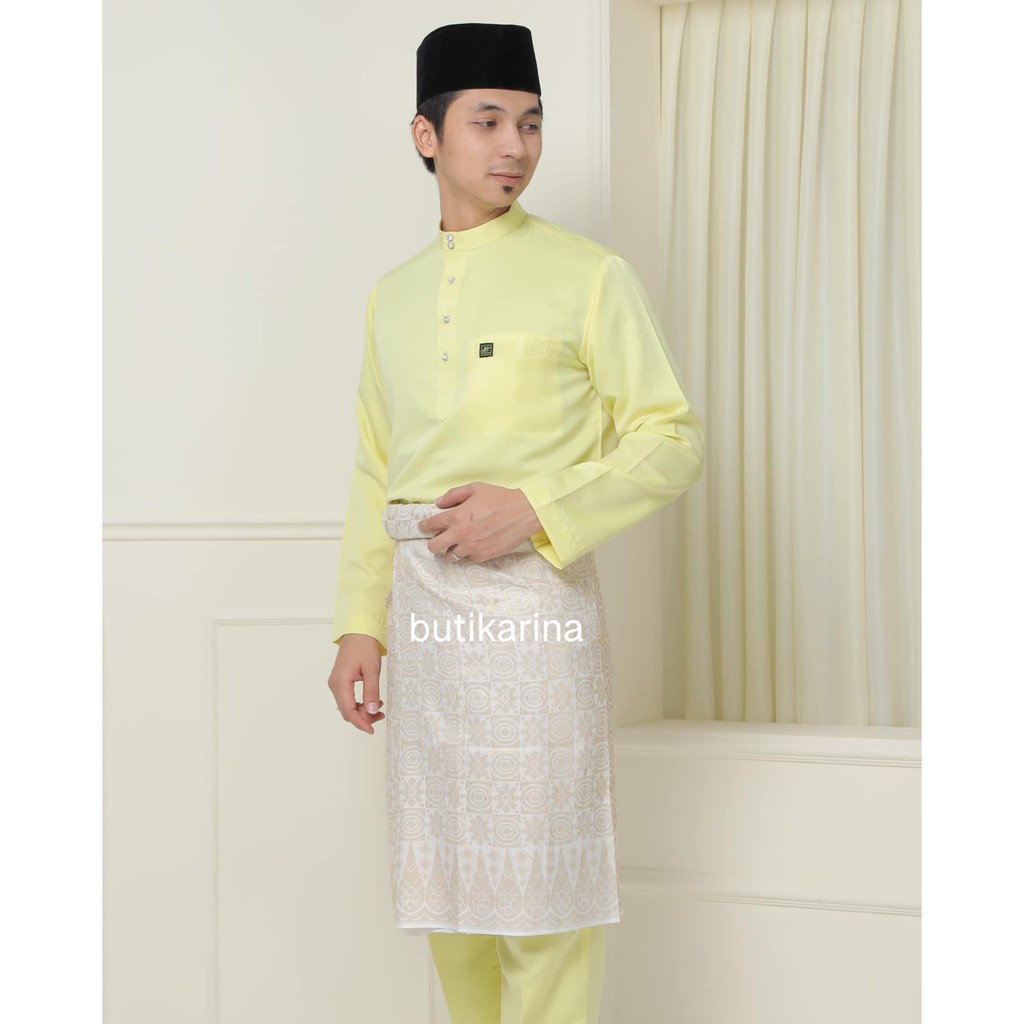 Wanzar Lebaran 2022 Kurung Moden Baju Kurung 2022 Baju Kurung Wanzar Men Baju Melayu Musaa Baju Melayu In Light Yellow